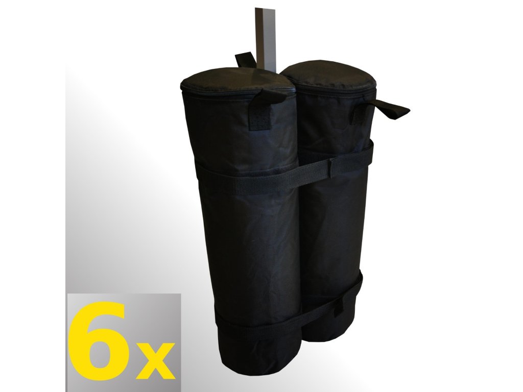 Tieto prvky sú navrhnuté tak, aby sa naplnili pieskom a následne pripevnili k nohám stanu.